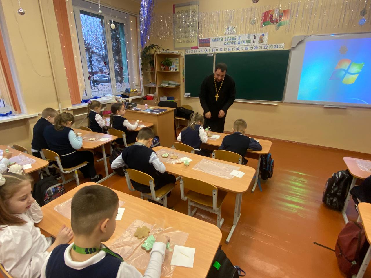В средней школе №3 города Сморгони в рамках акции «Наши дети» священнослужитель храма Преображения Господня провёл самый уютный и вкусный мастер-класс по росписи имбирных пряников.