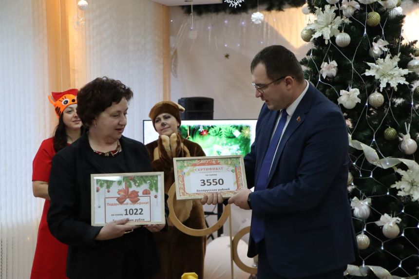 Эти радостные моменты с детворой разделили председатель райисполкома А.С.Грицкевич, заместитель председателя райисполкома Ю.В.Куликов, начальник отдела образования райисполкома Л.Р.Буяк. Гости пообщались с детишками, вместе с ними погрузились в волшебную атмосферу праздника, щедрыми аплодисментами оценили их творческие выступления и вручили подарки.