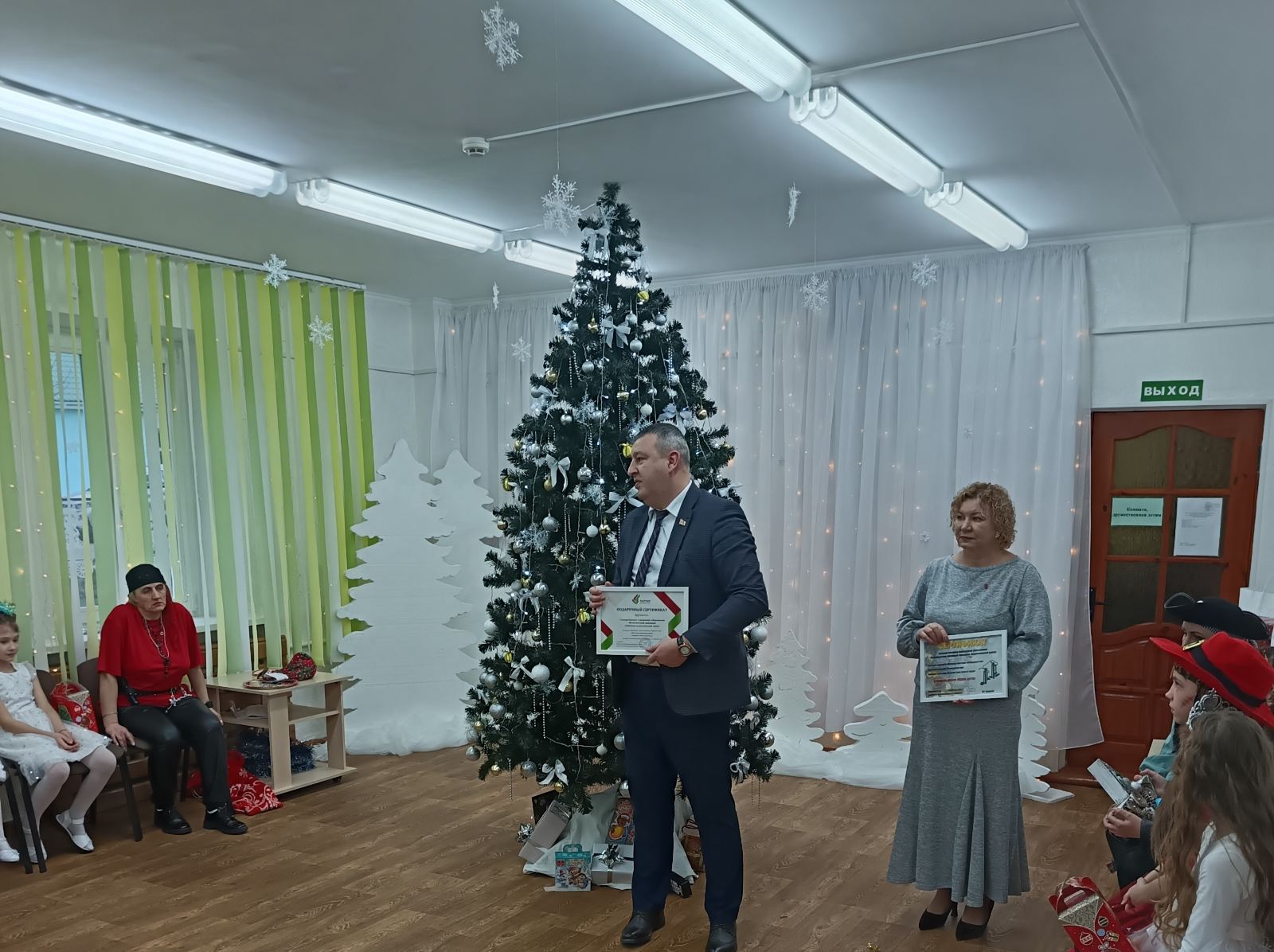 22 декабря воспитанники ГУО «Волковысский районный социально-педагогический центр» приняли участие в праздничной программе «Новогодняя сказка или в поисках новогодних подарков». С поздравлениями и наилучшими пожеланиями детей пришли поздравить член Совета Республики Национального Собрания Республики Беларусь, председатель Волковысского райисполкома Д.И.Захарчук, заместитель председателя райисполкома, председатель Волковысского районного отделения Белорусской партии «Белая Русь» И.А.Соловей, начальник управления образования П.Е. Красько, главный редактор газеты «Наш час», председатель Волковысской районной организации РОО «Белая Русь» Д.Н.Юшин, заместитель начальника Волковысского РОВД С.А.Януль, старший помощник прокурора Волковысского района К.Е.Короткевич, председатель РО ОО «Белорусский союз женщин» М.И. Полудень.