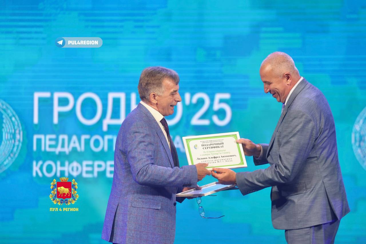 В рамках форума председатель облисполкома поздравил учителя математики гимназии №1 г.Лида Альфреда Ладыко, удостоенного почетного звания – Народный учитель Беларуси.