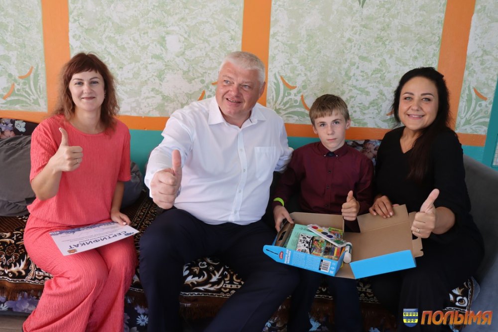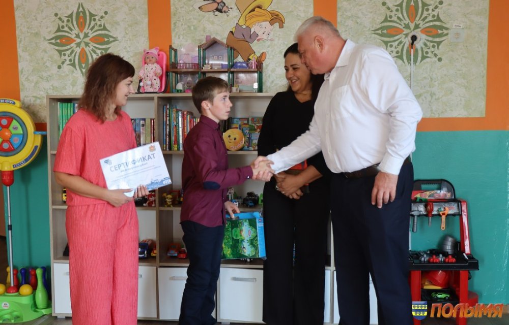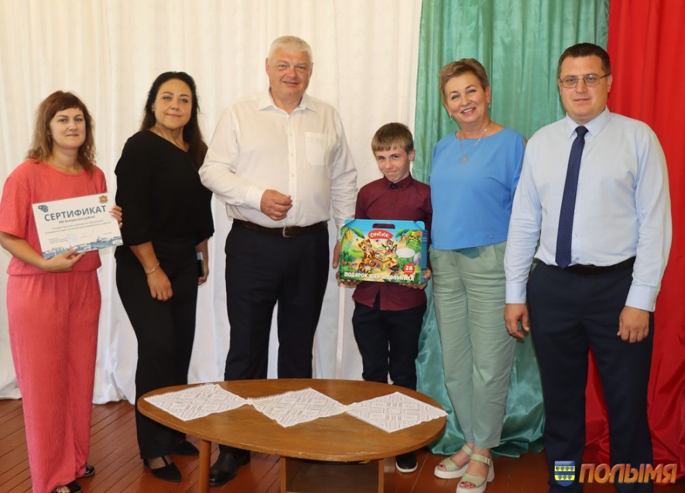В качестве подарка для социально-педагогического центра Кореличского района Юрий Алексей преподнес сертификат на улучшение материально-технической базы, а единственному воспитаннику, пятикласснику Владиславу, - набор школьных принадлежностей.