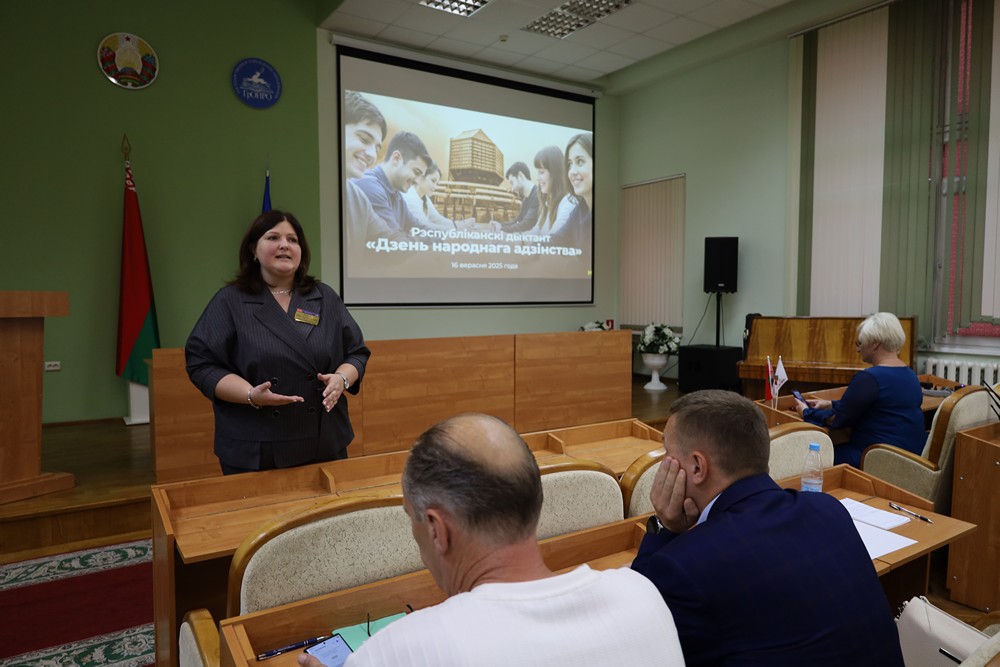Супрацоўнікі Гродзенскага абласнога інстытута развіцця адукацыі, слухачы павышэння кваліфікацыі, прадстаўнікі грамадскіх аб’яднанняў далучыліся да святкавання Дня народнага адзінства напісаннем рэспубліканскага дыктанту.