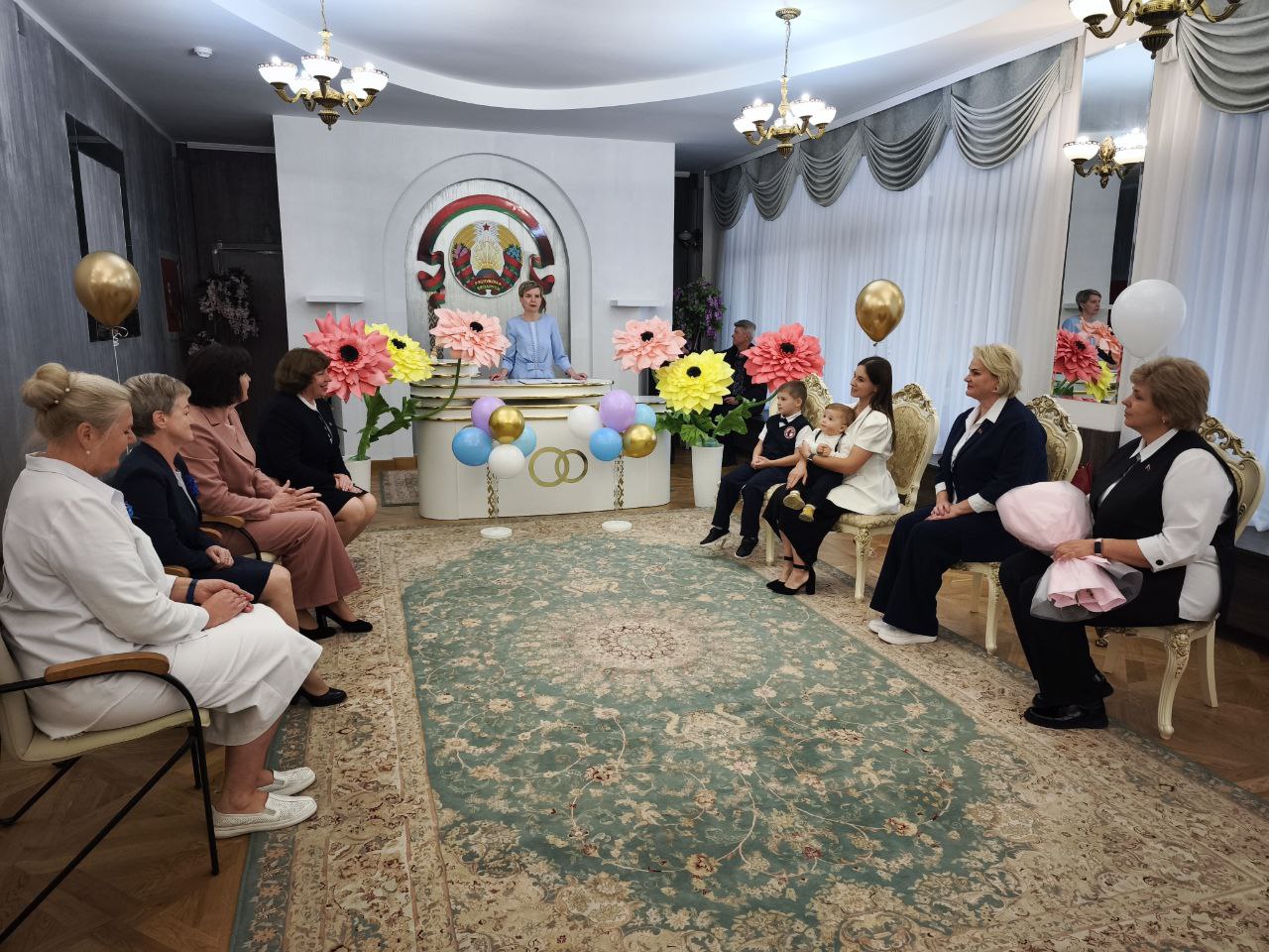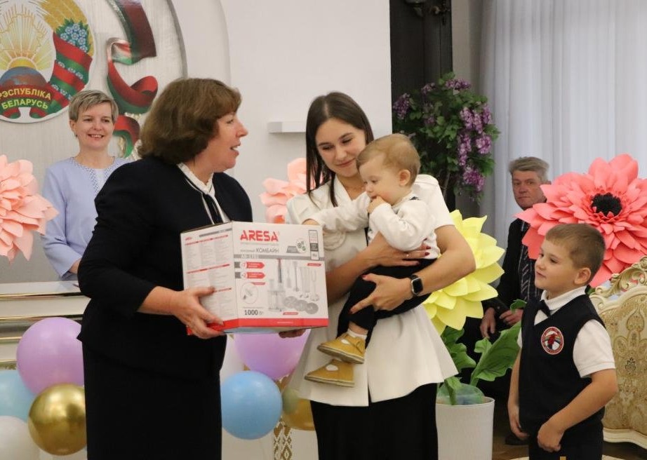 В День народного единства по доброй традиции, существующей на Слонимщине уже пять лет, в отделе ЗАГС райисполкома состоялось праздничное мероприятие – годовалого слонимчанина Никиту Хвесь, родившегося в этот день 17 сентября 2024 года, поздравили с днем рождения заместитель председателя райисполкома Юшкевич Т.В., начальник управления образования Валько С.В., представители общественных объединений, коллеги мамы Алины Александровны из ГУО «Средняя школа № 9 имени И.М.Сухомлина г. Слонима» и родные. Праздник получился душевным, ярким, полным сюрпризов и подарков.