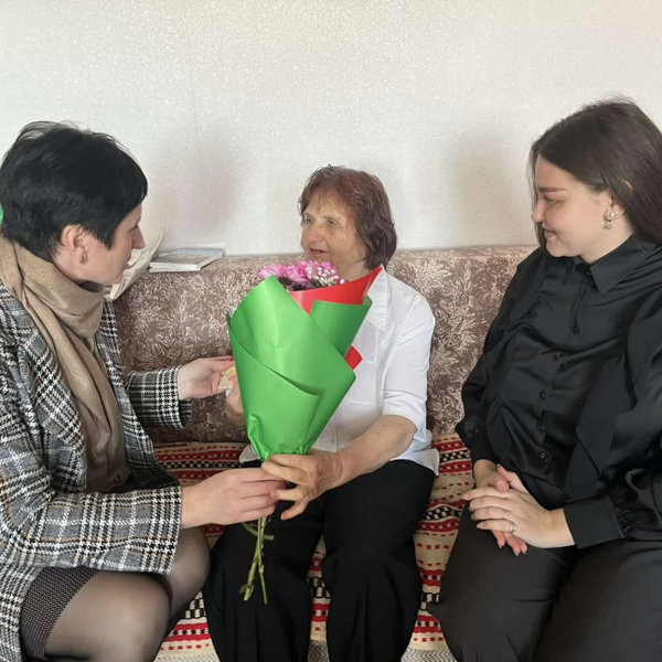 От имени Мостовского районного отделения Белорусской партии «Белая Русь» в рамках проекта «Учительское слово» председатель Мостовской районной организации профсоюза работников образования и науки Мария Цыбульская вместе с председателем Молодёжного совета Екатериной Езерской поздравили с Днём учителя ветерана педагогического труда и бывшего профсоюзного лидера Елену Владимировну Кукольник.