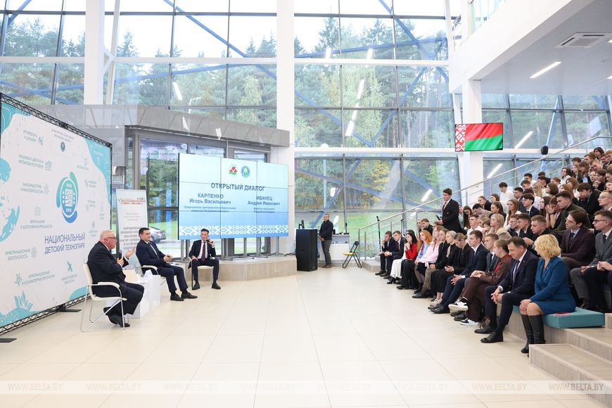 Подписание плана мероприятий прошло в Национальном детском технопарке, где состоялся открытый диалог Игоря Карпенко и Андрея Иванца с молодежью. Прошло мероприятие в рамках II Международного электорального форума.