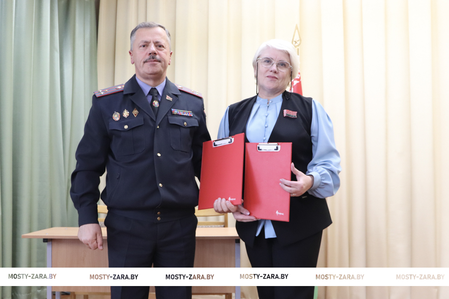 И вот исторический момент: начальник РОВД полковник Эдуард Шестак и директор СШ №5 имени В. Л. Володося Татьяна Легеза подписывают договор о взаимном сотрудничестве. Он будет способствовать успешному самоопределению учащихся, выбору ими профессий, связанных с обеспечением благополучия граждан и безопасности страны в целом.