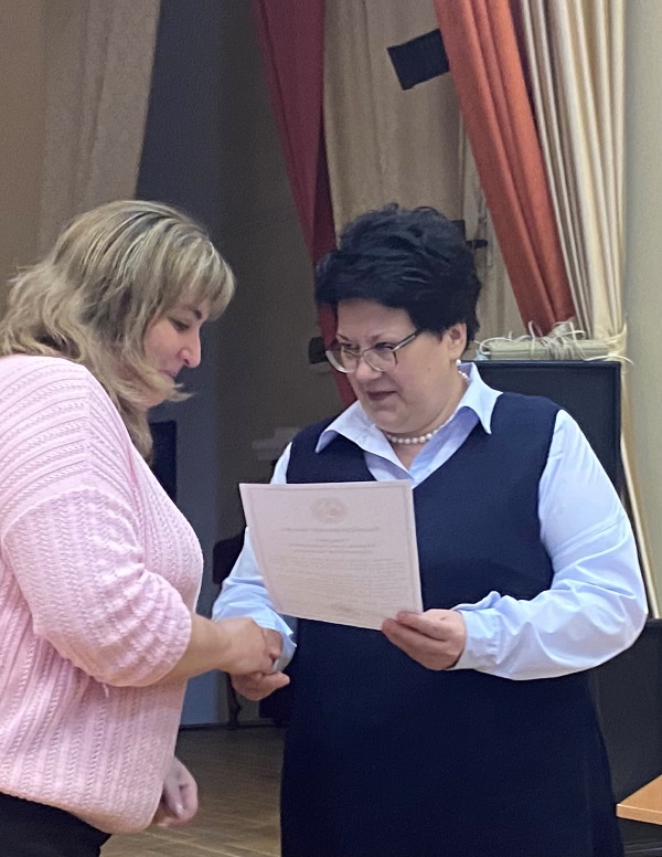 Благодарственное письмо за воспитание дочери, достигшей высоких результатов по итогам I четверти, вручено музыкальному руководителю детского сада № 6 Сульжицкой Татьяне Владимировне.