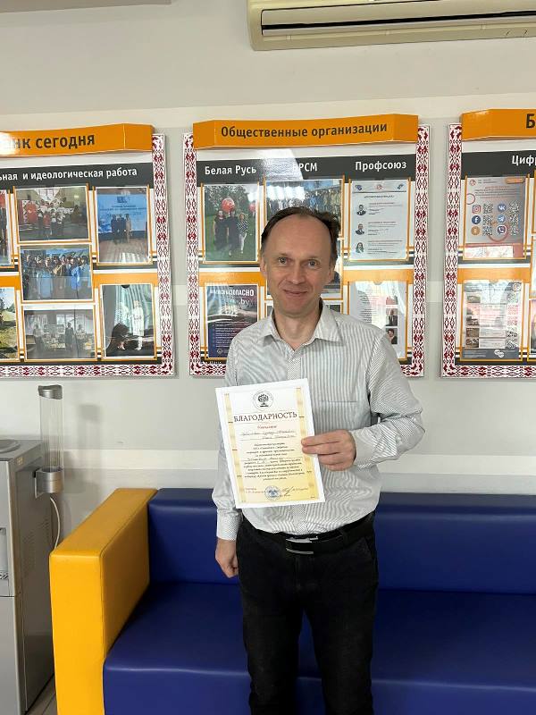 Нашему коллеге Урбановичу Эдуарду была вручена благодарность и выражена признательность за воспитание целеустремлённого и ответственного гражданина Республики Беларусь.