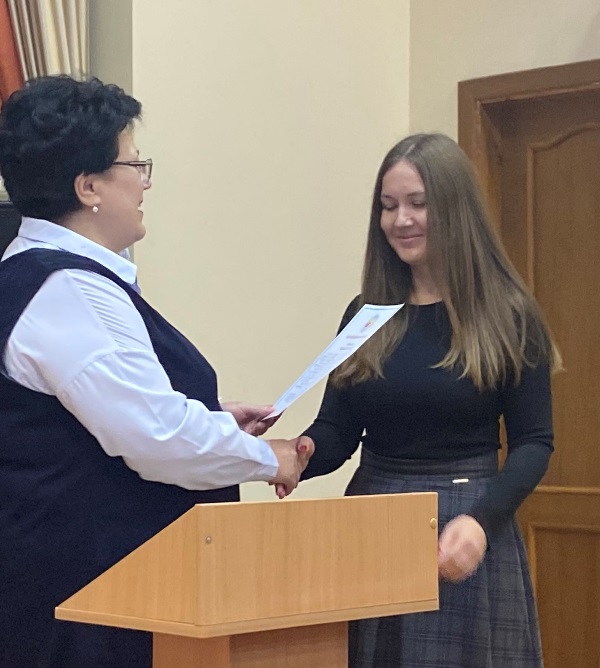 Директор государственного учреждения образования «Средняя школа № 6 г. Сморгони» Дмитриева Ж.М. вручила благодарственные письма работникам ОАО «САЗ», чьи дети окончили четверть с отличием: Балыш Анжелике Павловне за воспитание дочери Марины, Конопельченко Ивану Сергеевичу за воспитание сына Александра.