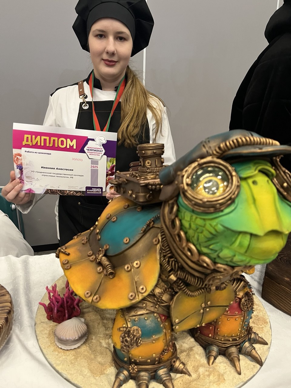 - номинация «Работа из шоколада» – золотая медаль (Иванова А.А., учащаяся Гродненского государственного колледжа отраслевых технологий);
