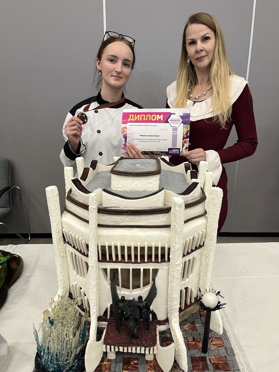 - номинация «Торт-скульптура 3D» – бронзовая медаль (Ракуть А.П., учащаяся Гродненского государственного колледжа отраслевых технологий);