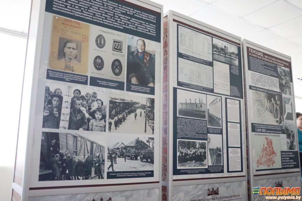 Выставка «Геноцид белорусского народа в годы войны» состоит из фотодокументальной выставки «Без срока давности» и экспозиции, посвященной еврейскому населению Мира и близлежащих населенных пунктов, подвергшихся геноциду.