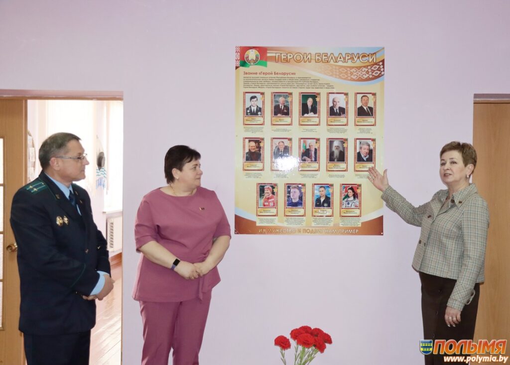 — Сегодня в школе произошло два знаменательных события, — обращаясь к присутствующим, отметила Ирина Осташевич. — Они играют огромную роль в гражданско-патриотическом воспитании подрастающего поколения. В дальнейшем такие выставки и стенды будут открываться в каждом учреждении общего среднего образования нашего района, области и республики. На стенде размещены четырнадцать портретов людей, которые являются гордостью нашей Беларуси. Каждый из них внес свой вклад в развитие страны.