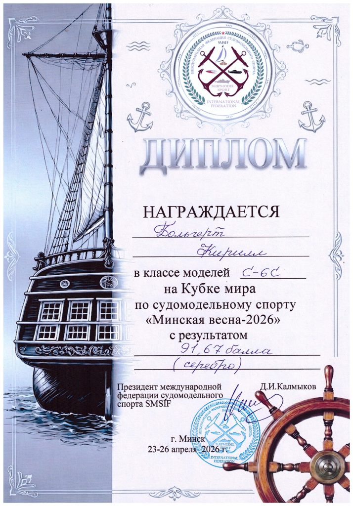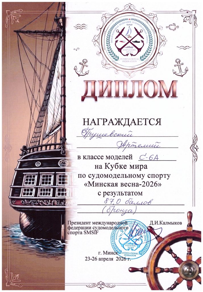 С 23 по 26 апреля 2026 года в Минске прошел Кубок мира по судомодельному спорту «Минская весна — 2026». В соревнованиях приняли участие сильнейшие спортсмены и моделисты из 10 стран. Для участия в соревнованиях зарегистрировались более 160 участников, которые представили 280 судомоделей в различных классах. Гродненскую область на этих престижных стартах достойно представили учащиеся объединения по интересам «Судомоделирование».