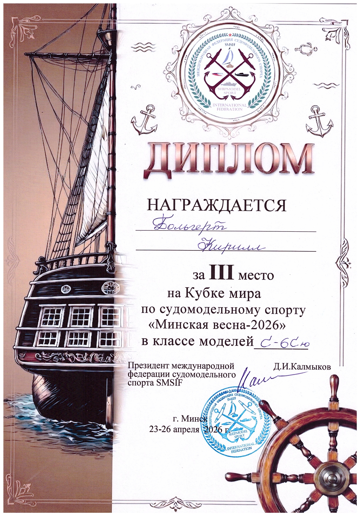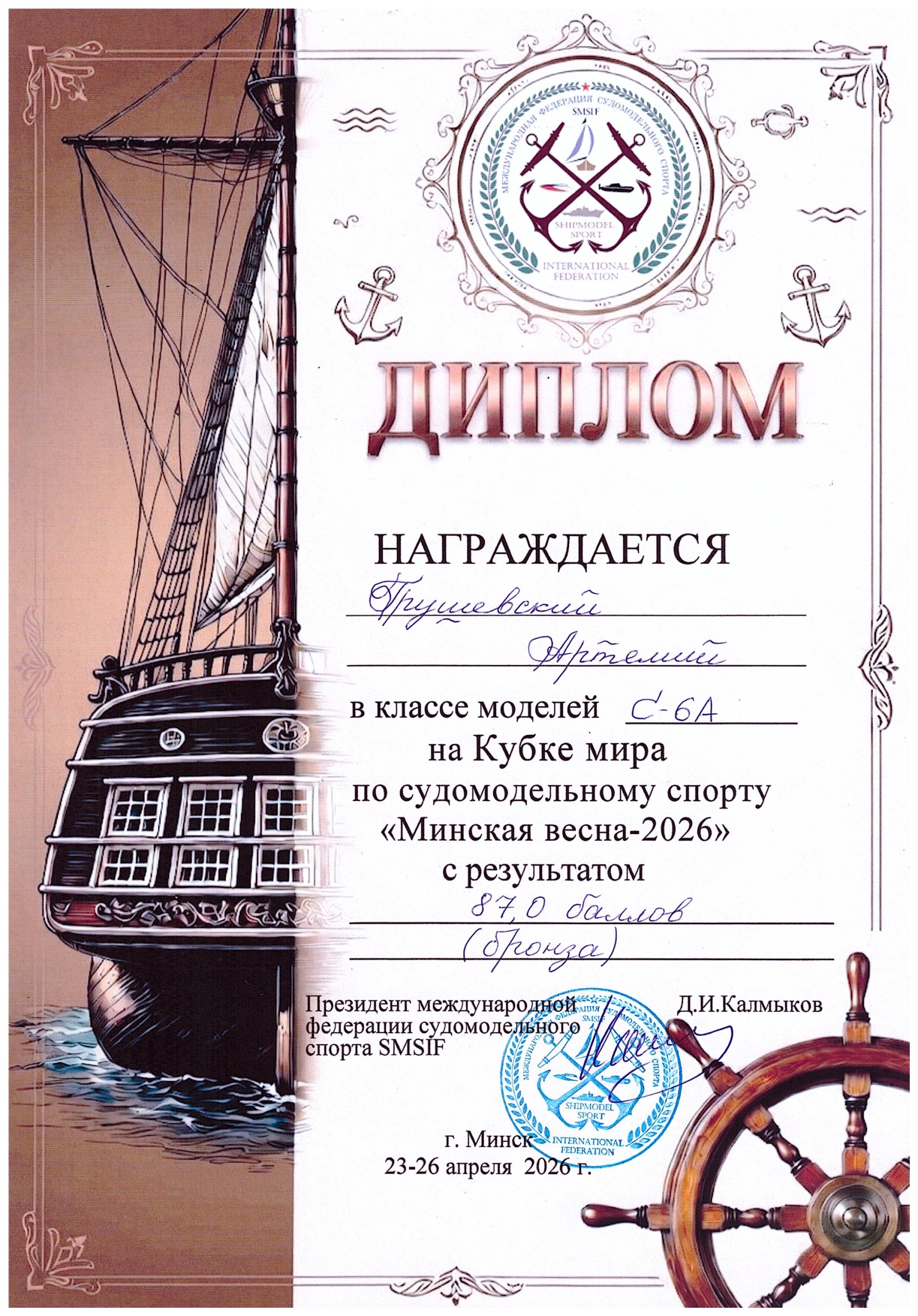 Грушевский Артемий в классе С-6А во взрослом зачете завоевал бронзовую медаль.