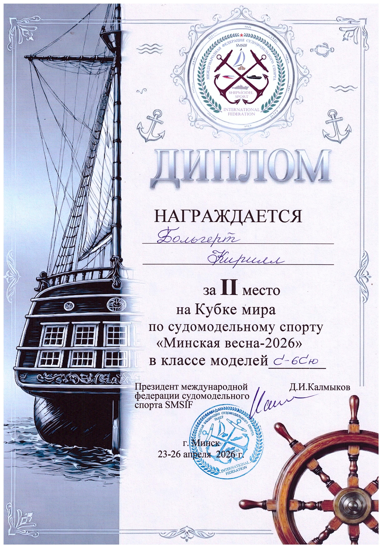 Больгерт Кирилл в классе С-6С (взрослый зачет) завоевал две серебряные медали. Также Кирилл успешно выступил в юношеском зачете в том же классе, заняв 2 и 3 места.